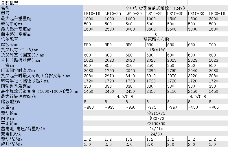 平和1.0/1.5噸全電動貨叉覆蓋式堆垛車24 V